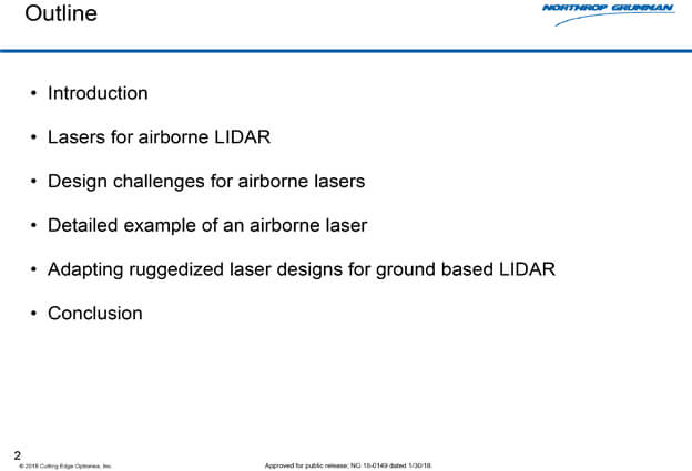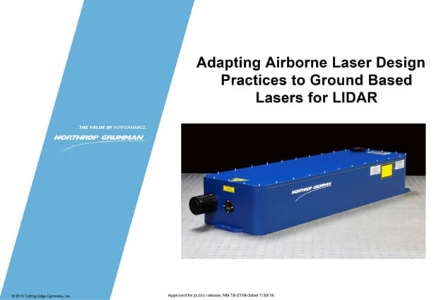 OutlineCutting Edge OptronicsDPSS Laser ManufacturingKey Application AreasLasers for Airborne LIDARLaser Design EnvelopeDesign ChallengesAirborne Laser DesignEnvironmental FactorsOSL Laser InternalsVerifying DesignPerformance & ReliabilityAdapting Airborne Designs to Ground Based LIDARGigashot-LGround Based LIDAR LaserPerfomanceConclusionDownloads