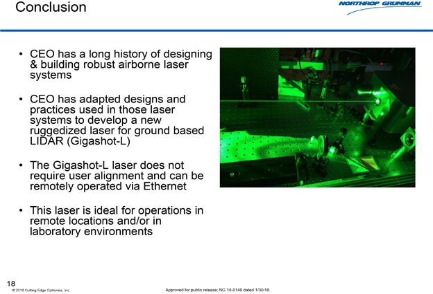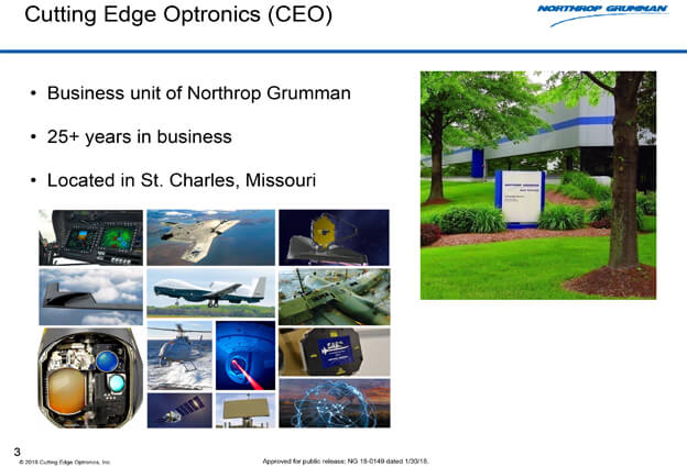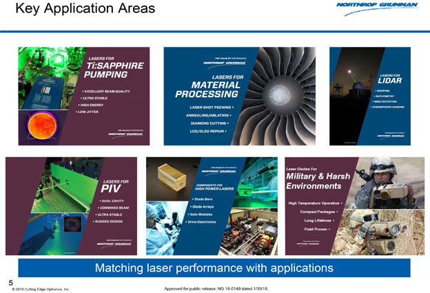 Northrop Grumman-Cutting Edge Optronics (CEO) a leading supplier of state-of-the-art laser diode arrays and laser system hardware.